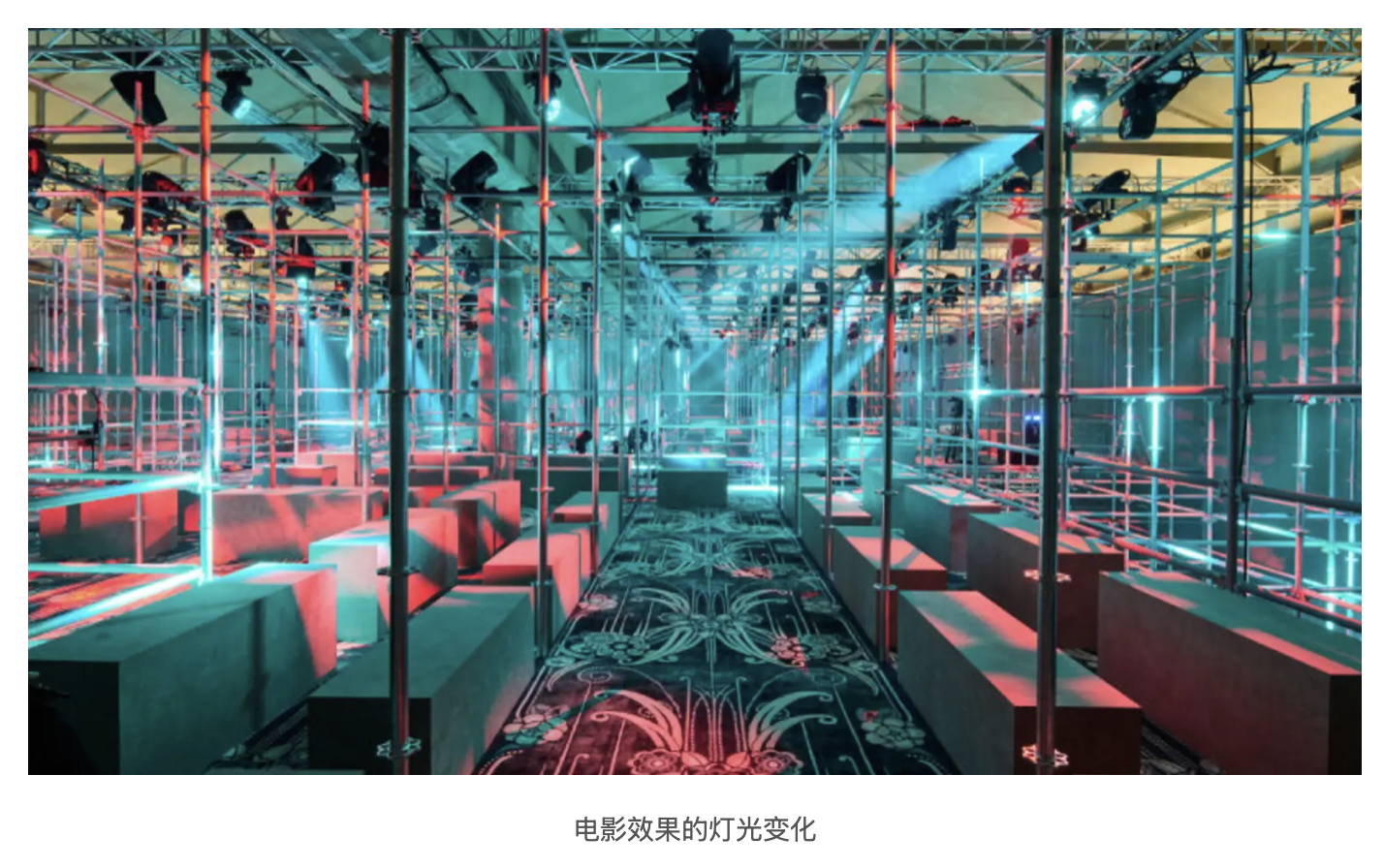 當人們對奢侈品秀場的印象還停留在 “水晶燈、絲絨幕布” 的奢華語境中時,Prada FW25 的秀場設計卻用 “腳手架” 打破了這一慣性 —— 設計工作室 AMO 在 Prada Fondazione 內搭建起工業(yè)感十足的腳手架結構,鋪上 Catherine Martin 設計的觸感藍色地毯,觀眾坐在樸素的混凝土長凳上,模特則在腳手架之間穿梭走秀,一場 “反傳統(tǒng)” 的時尚場景就此誕生。