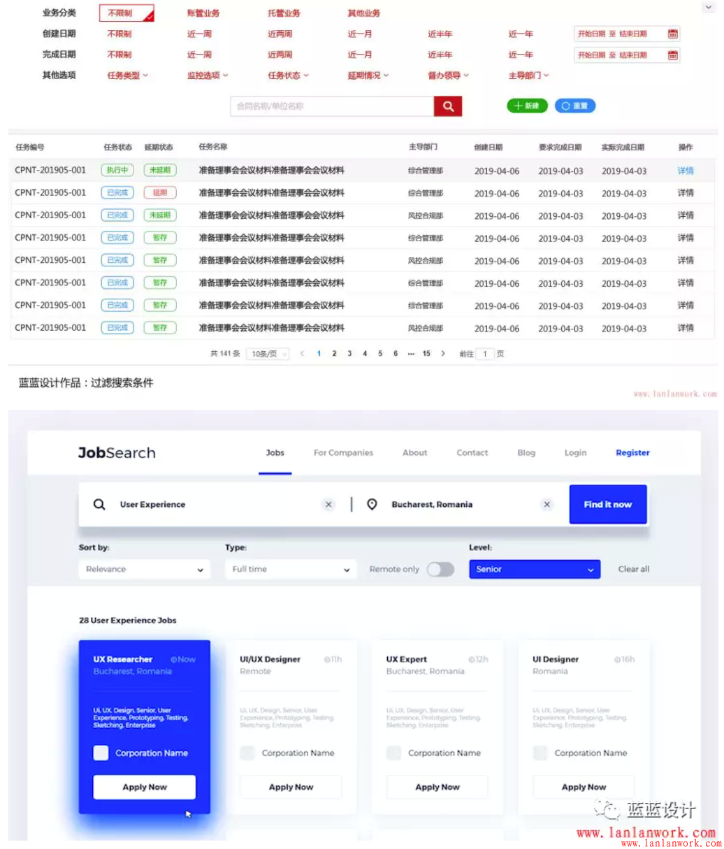 過濾條件區域可以定義好“條件名稱”一致寬度,一般在八個字左右,避免有的字節多,有的字節少,行數多了,參差不齊,區塊和區塊之間也要定義好統一的間距,這樣整體頁面就顯得整齊劃一、條理清晰。